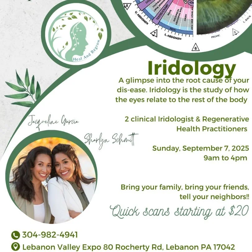 CarrollCare Iridology and Wellness, LLC Iridology is the study of health via an examination of the iris, (colored section of the eye) the sclera (white of the eye) and the structural aspects of the eye including the pupil, pupil border and collarette.