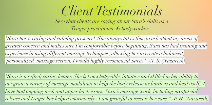For Sara, the beauty of Trager® lies in its philosophy. It’s not about forcing the body to change—it’s about inviting it to remember what freedom feels like. Through mindful touch and movement, clients often leave feeling lighter, more spacious, and more in tune with themselves.